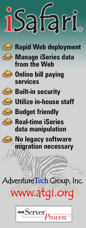 Are you looking for a simple and affordable way to provide on-line bill paying services, access to account status and general information to your customers? It's a jungle out there, and AdventureTech Group, Inc. (ATGI) has your software solution - iSafari.